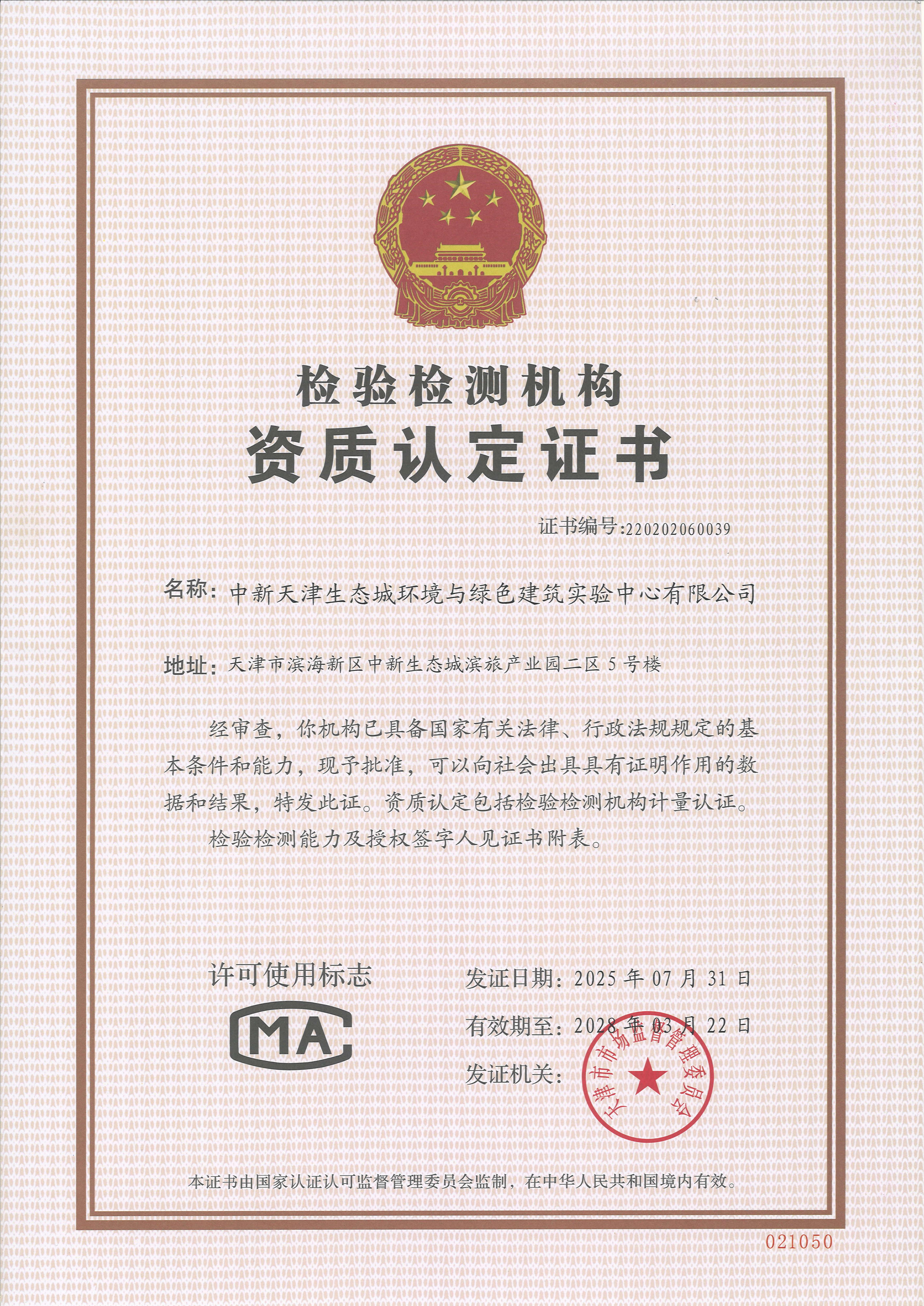 公司發展至今,技術能力不斷拓展和提升。現已具備檢驗檢測機構資質(簡稱CMA)、天津市建設工程質量檢測機構資質、中國合格評定國家認可委員會實驗室認可資質(簡稱CNAS)等資質。同時,公司已被認定為高新技術企業、天津市專精特新中小企業、濱海新區首家近零能耗建筑第三方測評機構。公司主要從事建筑材料及構配件、主體結構及裝飾裝修、建筑節能、道路工程等檢驗檢測服務,以及綠色建筑節能評估、近零能耗、房屋質量安全鑒定等咨詢服務業務。公司在冊員工為60人,其中高級職稱30名,中級職稱20名,初級職稱10名。